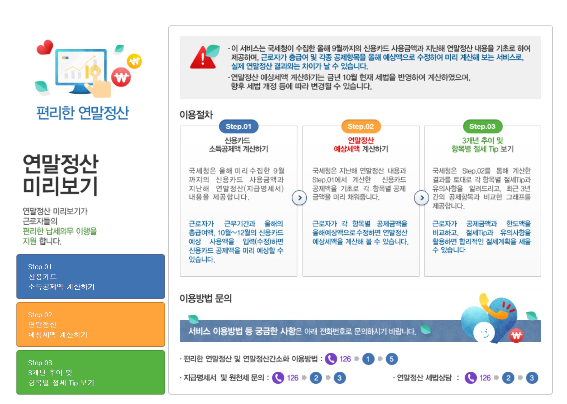 신용카드 소득공제액 계산하기부터, 연말정산 예상세액 계산하기,