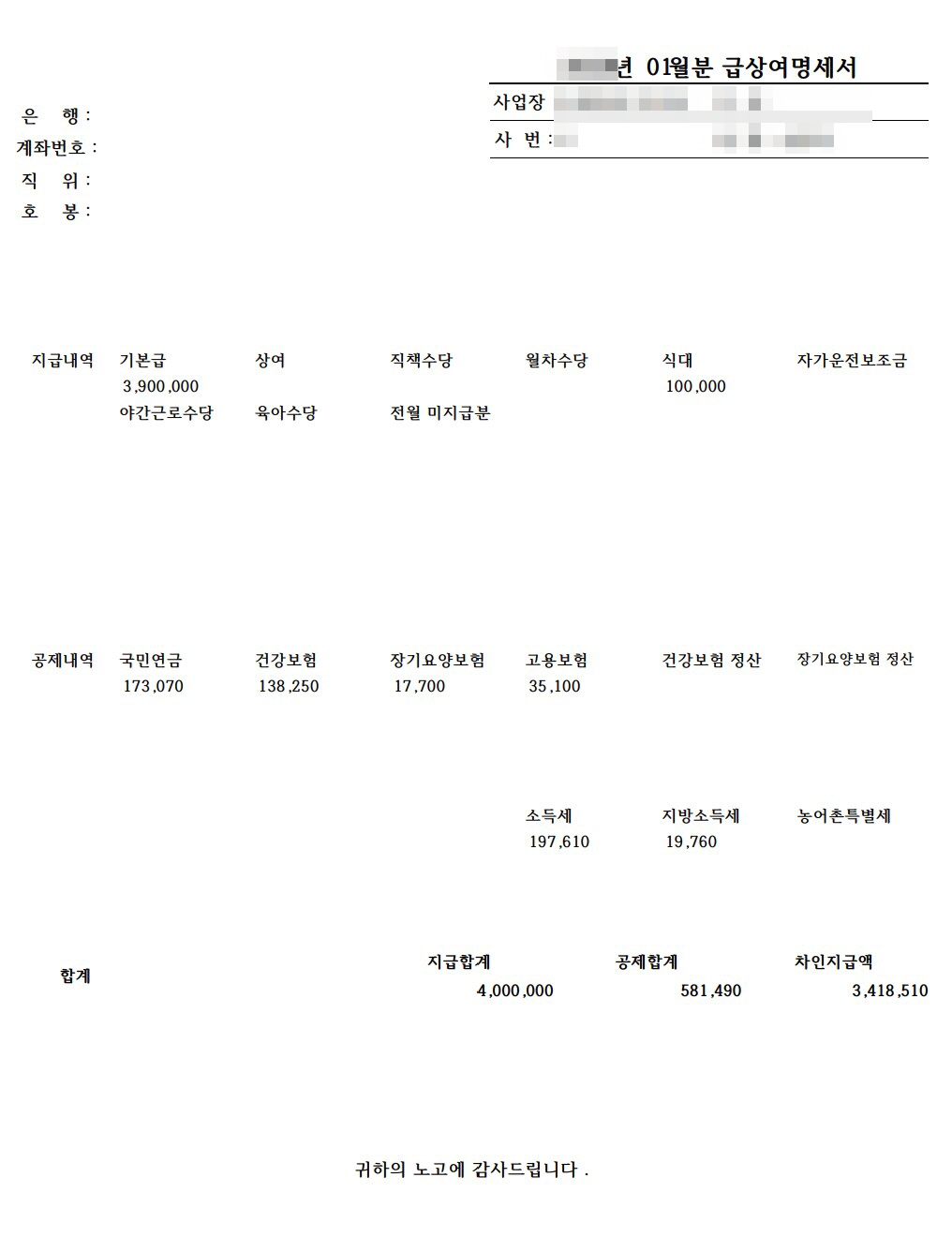 본인의 급여명세서를 한 번 확인해 보시면