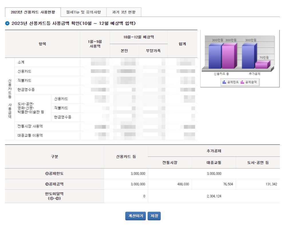저는 신용카드 공제 300만원 받고, 추가 공제(전통시장, 대중교통, 도서·공연 등)