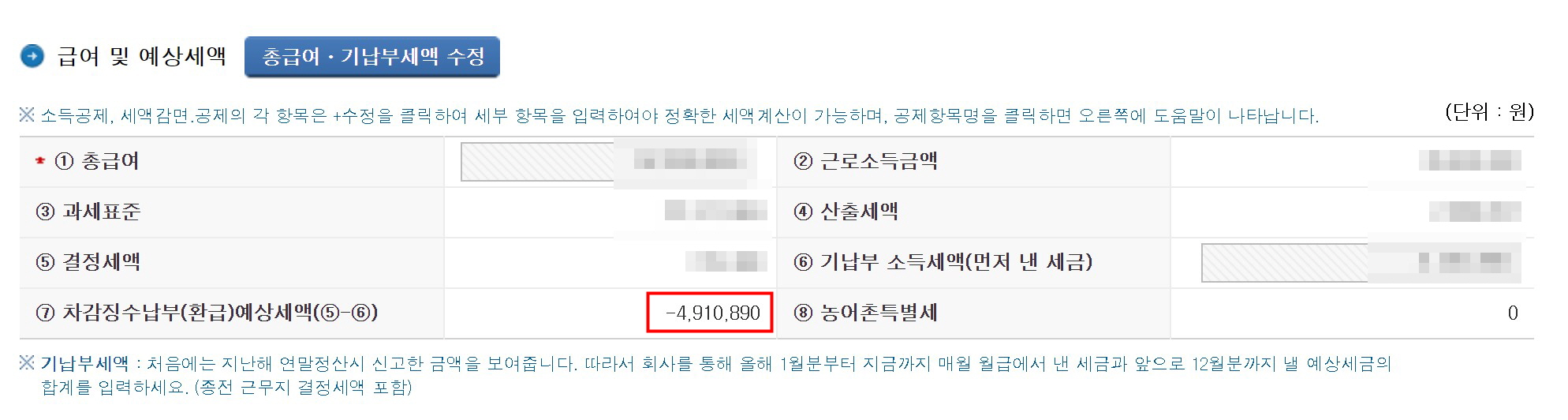 (세액이 마이너스로 나오면 돌려 받는거고, 플러스로 나오면 내셔야하는 겁니다.)