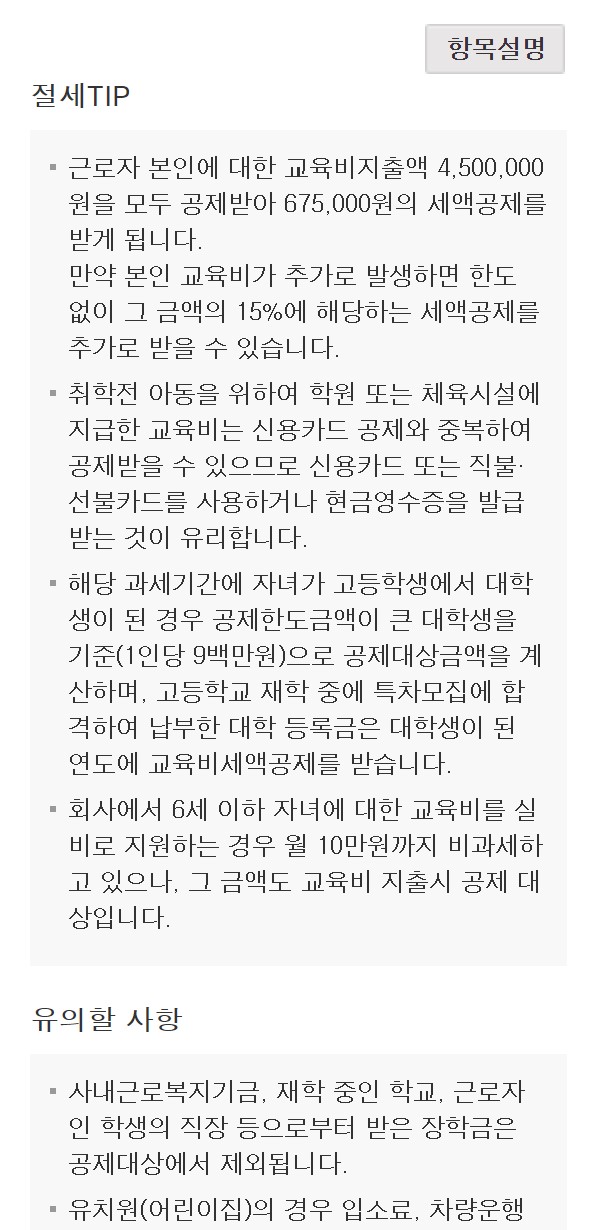 교육비, 기부금, 월세 등)에 따라 금액은 달라집니다.